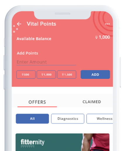 An employee will get 500 points per insured member every month on subscribing to the Vital insurance plan